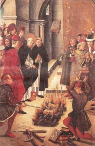 В ряде случаев протестанты «соревновались» с католиками в том, что касается преследования прогрессивных мыслителей. Одним из примеров может служить судьба Мигеля Сервета (1509-1553 гг.), испанского мыслителя, теолога, естествоиспытателя и врача. Сервет был известен своими критическими комментариями к «Географии» Птоломея, а также великими открытиями в области физиологии (кровообращение в легких, или так называемый малый круг кровообращения, предположение о наличии капилляров, связывающих легочные артерии и вены и т. д.). За свои убеждения, противоречившие церковным догмам, учёный был приговорен к сожжению судом римской инквизиции и вынужден был бежать в Женеву, где тогда властвовали кальвинисты. Однако кальвинистская церковь в Швейцарии не спасла Сервета от расправы, а отправила на костер. Мигель Сервет вошёл в светскую историю как первая жертва протестантского фанатизма.